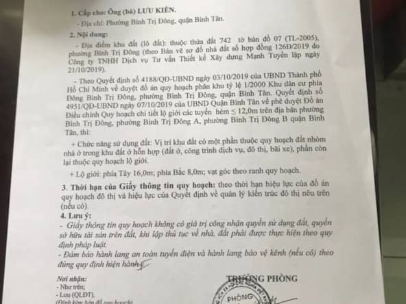 Đất thổ cư 305/19 Lê Văn Quới P. Bình Trị Đông 46×38 giá 43,5 tỷ